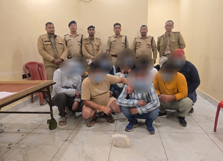 जिनमें संजय सिंह पुत्र किशन सिंह ,बृजमोहन पुत्र स्व० राजेन्द्र सिंह, सदीप सिंह पुत्र नन्दन सिंह, गौरव पुत्र विपिन चंद्र,घनश्याम पुत्र घनानन्द, पंकज कुमार पुत्र नन्द किशोर, धीरज पुत्र वंशीधर, हिम्मत सिंह पुत्र राजेन्द्र सिंह, अंकित पुत्र सुन्दर लाल, मोनू पाण्डे पुत्र जगदीश चन्द्र, साहिल रायत, कुन्दन सिंह पुत्र कुवंर सिंह, प्रदीप पुत्र जीवन चन्द्र निवासीगण भीमताल जिला नैनीताल को गिरफ्तार किया गया हैं जिनके पास से 52 ताश पत्ती व 2 लूडो डाईस मय डिब्बी और 4 लाख 51 हजार 5 सो रुपये बरामद किये गये।