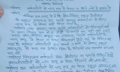 4 महीने से नहीं मिला वेतन त्यौहार के चलते कर्मचारी परेशान, विद्यायल कर्मचारी संघ द्वारा एसडीएम नैनीताल को सौंपा ज्ञापन।